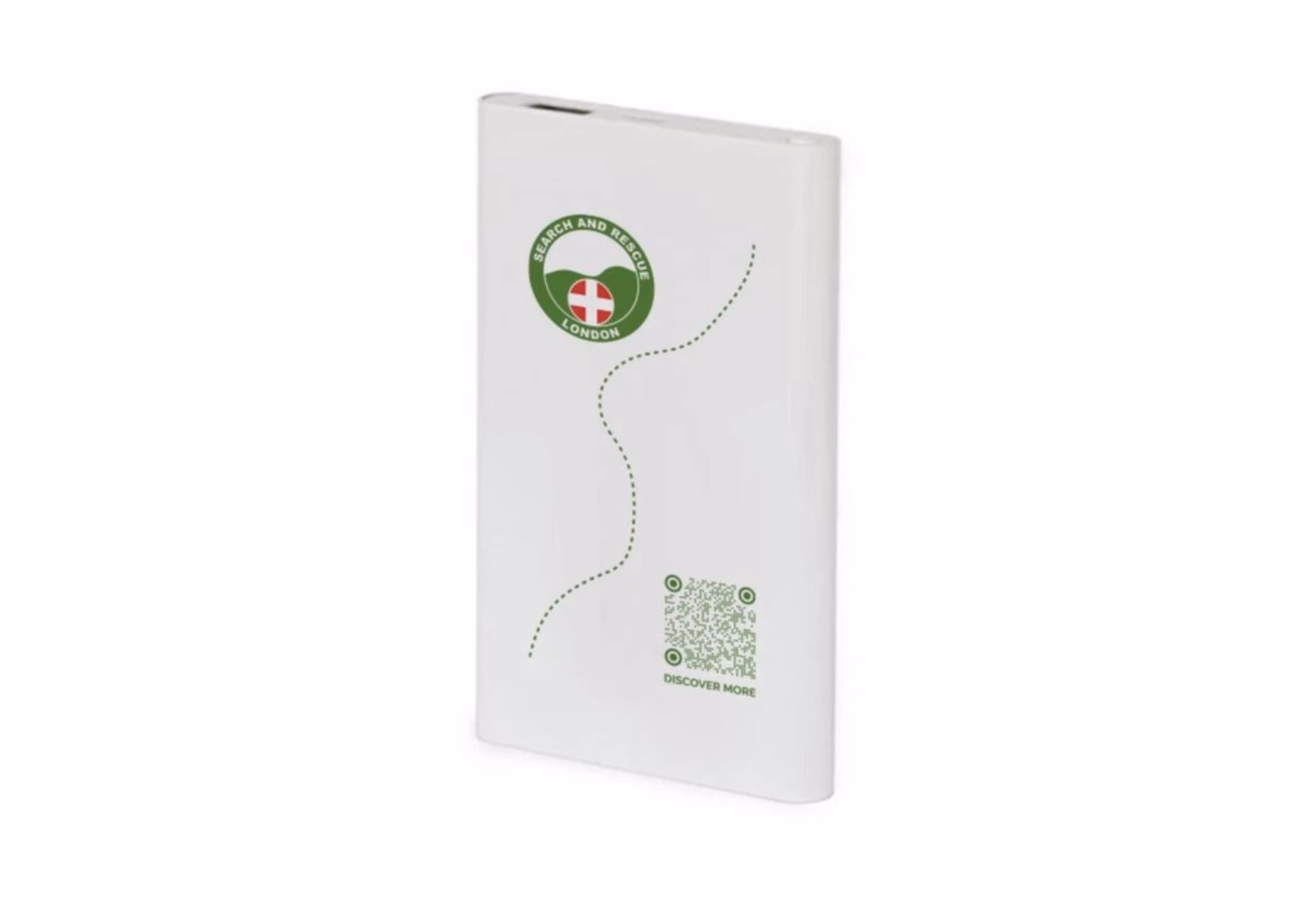 Stay charged on the go with our slimline 4000mAh white power bank, branded with our logo. It's the perfect mix of practicality and support. Includes USB-C cable.